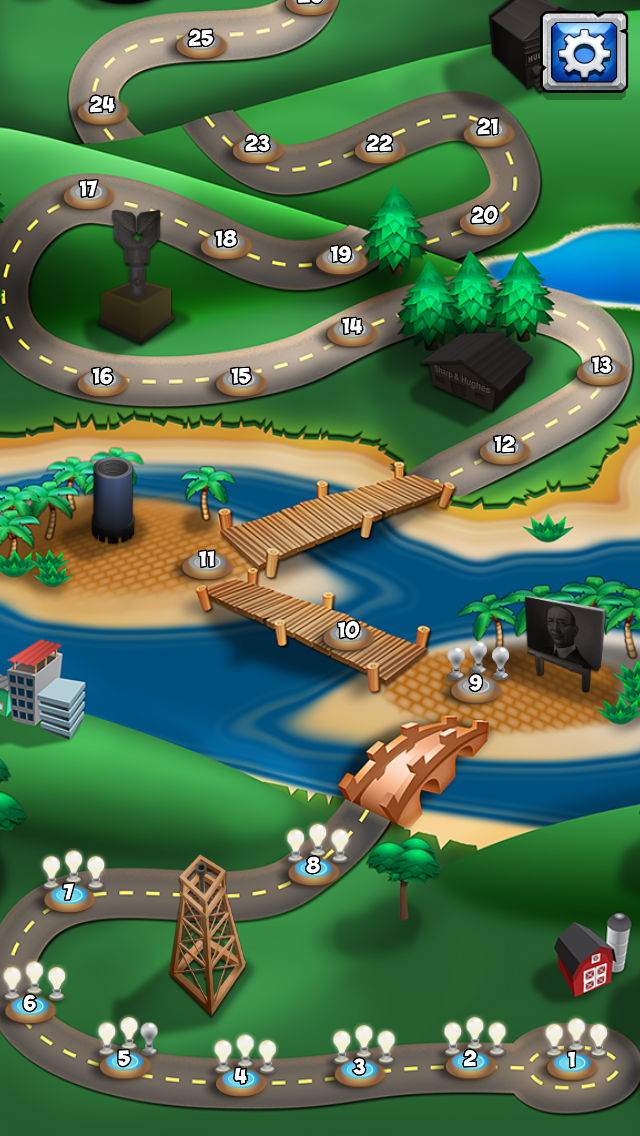 When you make a match with a “special” piece on the screen, and a drill comes through and wipes away a whole row of rocks. As you move up the ranks you unlock different types of drills and tools. If you make a move that results in a multiple drills and a high number of points you’re move can get proclaimed “Bit-tacular.” As you advance through the ranks you can unlock different Baker Hughes technology or industry history. Not to mention the home screen of the game is a landscape with different oil industry locations. You start at a farm then you move past different types of rigs, office buildings and billboards with oil industry facts