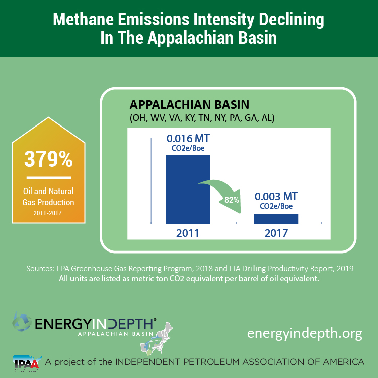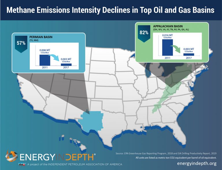 Additionally, Energy In Depth recently wrote that “From 2011 to 2017, combined oil and natural gas annual average production grew from 322 million Boe to 1.5 billion Boe. At the same time, methane emissions from production in the basin fell from 5.3 MMT to 4.7 MMT, resulting in an emissions intensity reduction of 82 percent.”