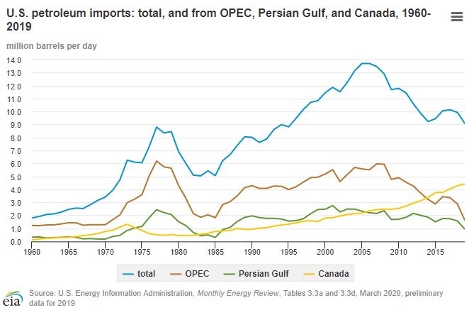 Crude oil still accounts for the largest share of US energy imports, and we were still importing more crude oil than we were exporting in 2019, according to the U.S. Energy Information Administration. But imports have taken a dramatic drop from a peak in 2006. Natural gas exports and imports met in the middle in 2017, an exports eclipsed imports in 2019. We have always been a net exporter of coal, which is a small but important part of the overall mix.
