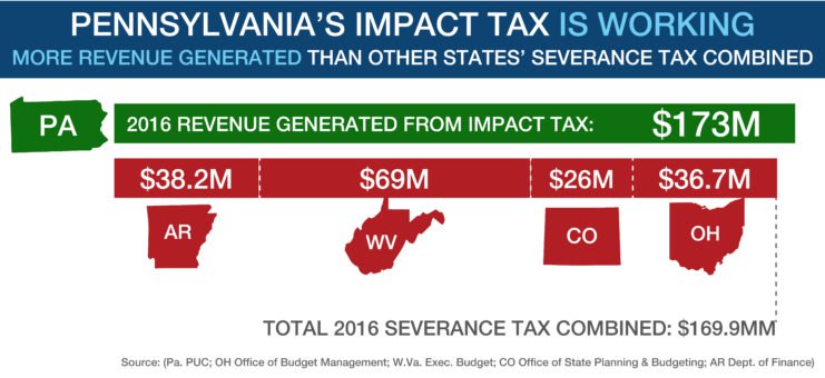 In fact, Pennsylvania’s natural gas impact tax generated more revenue last year than the severance tax in four of the nation’s largest energy producing states – combined. Think about that. While some suggest that Pennsylvania’s natural gas producers aren’t “paying their fair share,” the facts suggest otherwise.