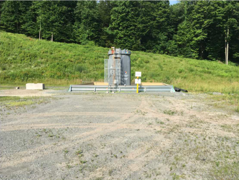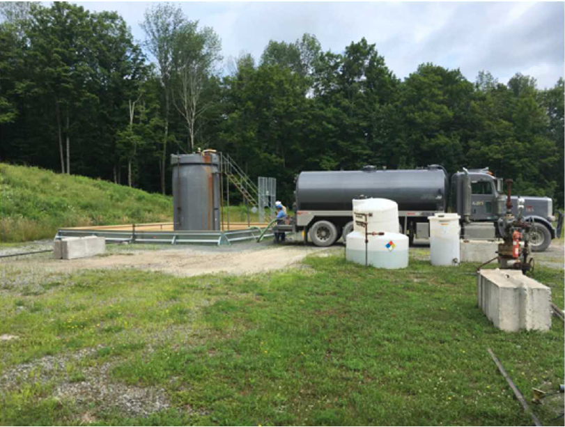 The truck Huston highlights is making a routine stop at the Costello location to pick up stormwater that had collected inside of the containment area around the produced water tanks.