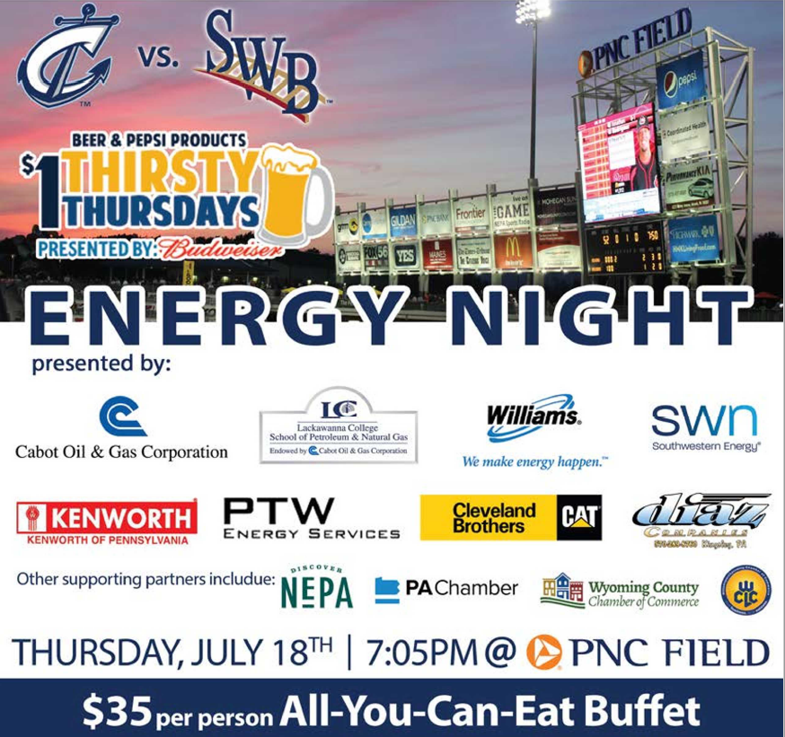 On Thursday, July 18 at 7:05 pm, friends, family and neighbors of the energy industry will once again join baseball fans at PNC Field in Lackawanna County for Energy Night.