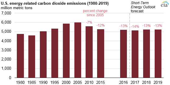 This year’s EIA report stated, “The underlying energy consumption trends that resulted in these changes—mainly because more electricity has been generated from natural gas than from other fossil fuels—have helped to lower the U.S. emissions level since 2005 because natural gas is a less carbon-intensive fuel than either coal or petroleum.”